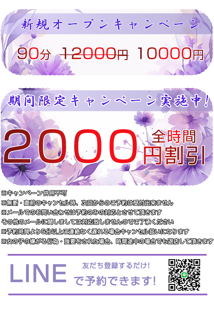 究極とも言える癒しを五感で感じて欲しい・・・ そんな思いを込めた当店は違わぬ充実したサービスを誇るお店です。 カワイイ天使達のキメの細かな行き届いたサービスに加え、 アナタの健康だけでなく、心の癒しまで追求しちゃいます。 素敵な出逢いと癒し、愛を込めてお届けしていきますね!